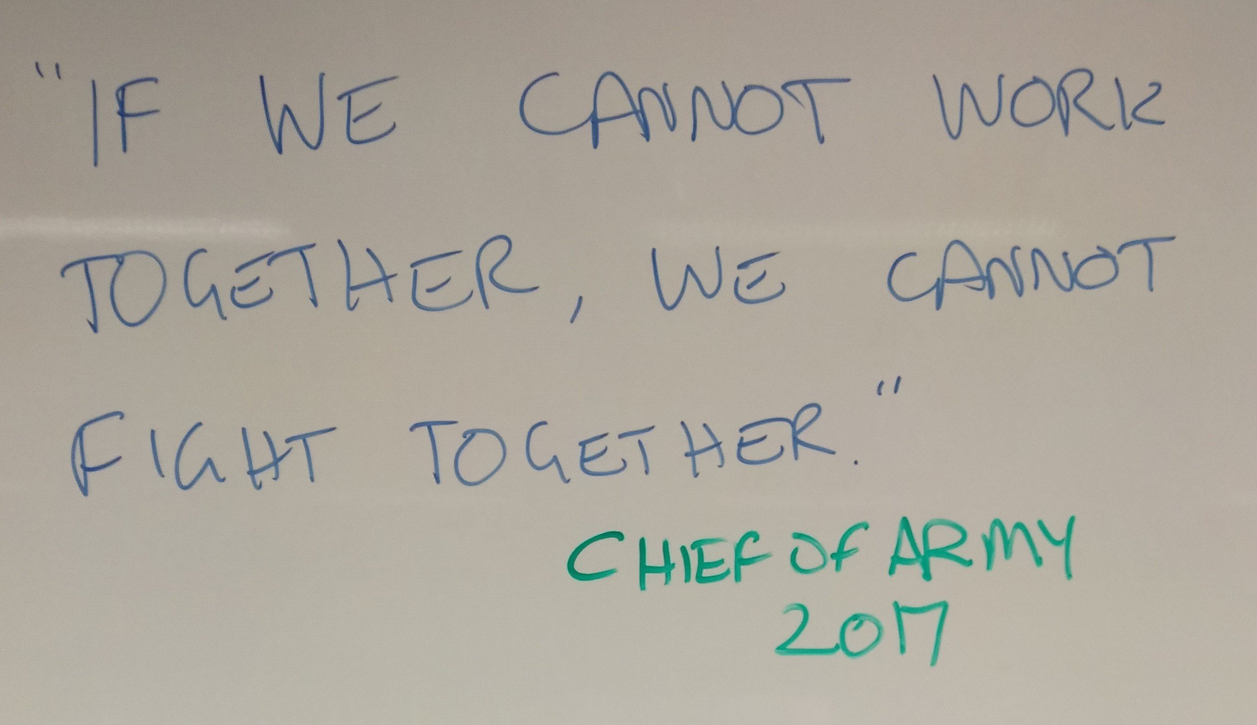 “If we cannot work together, we cannot fight together.” Chief of Army 2017